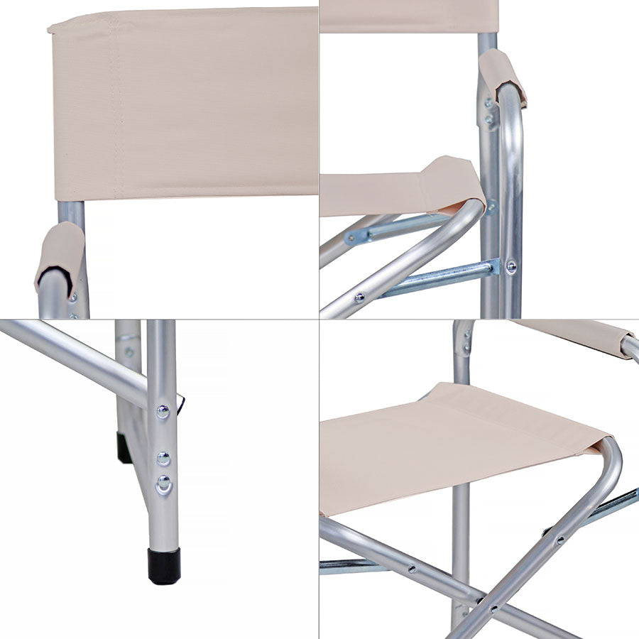 Per le tue giornate estive prova la comodità delle sedie regista Pippa nella nuance ecrù! Realizzate in alluminio anodizzato e con tela in PVC, sono perfette per l'arredo giardino o come sedie mare.