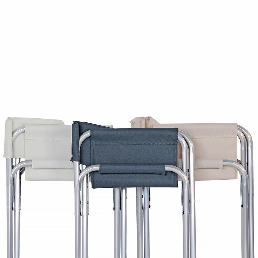 Le sedie regista Pippa sono realizzate in solido alluminio e resistente tela in PVC, e sono perfette per essere utilizzare come sedie mare o sedie da giardino.