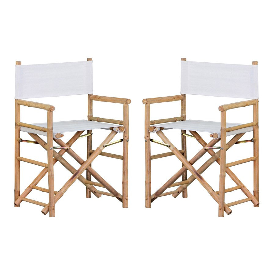 Set 2 Sedie Regista Mare Pieghevoli 63x44x91 cm in Bambù e Tessuto Bianco