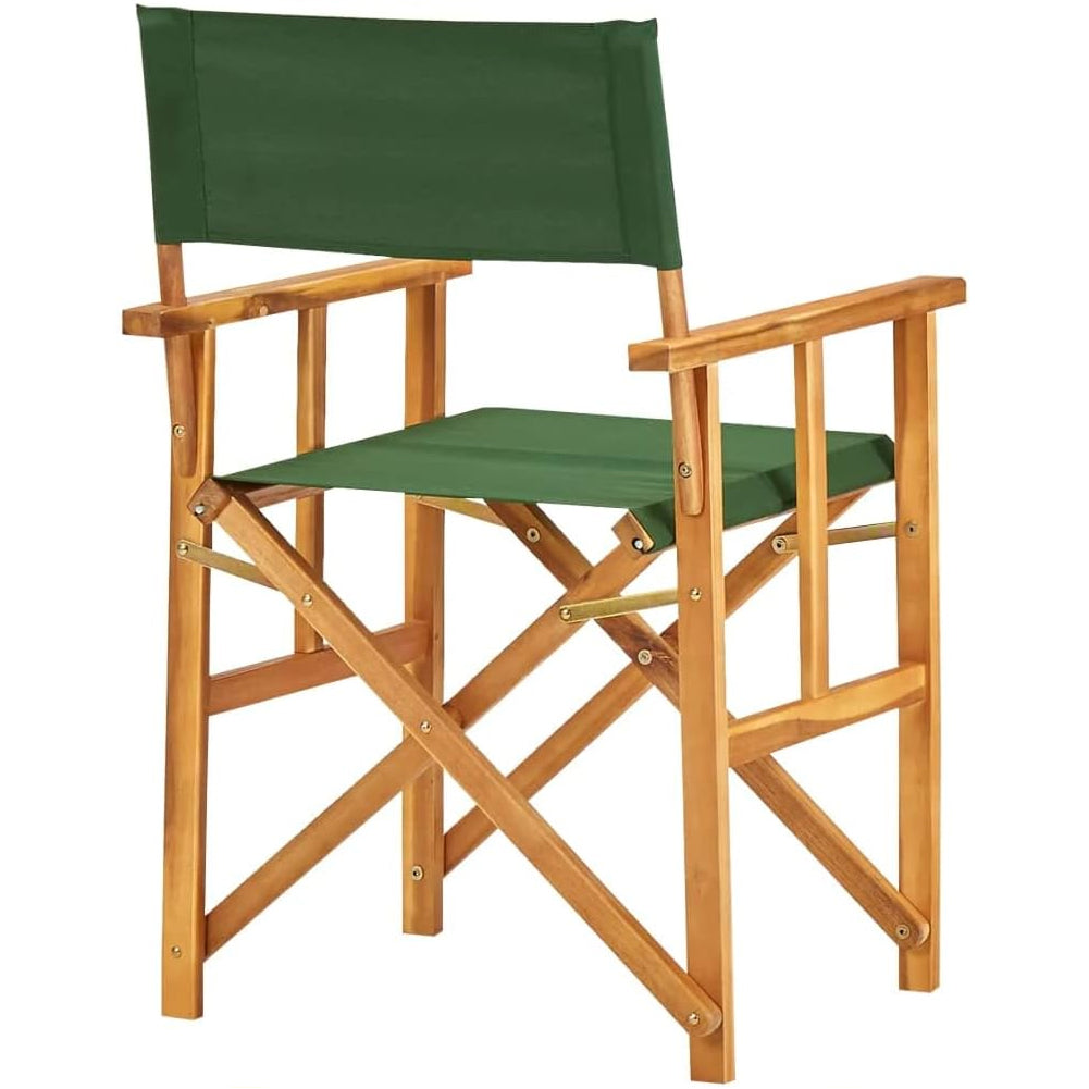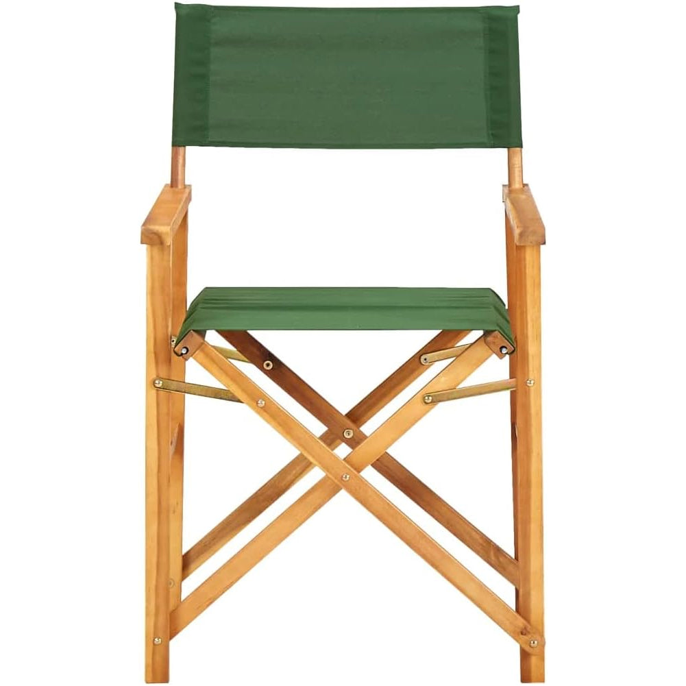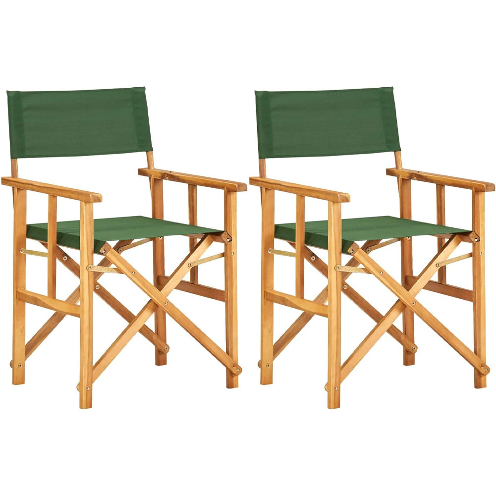Set 2 Sedie Regista Pieghevoli Seduta e Schienale in Tessuto Verde e Struttura Acacia