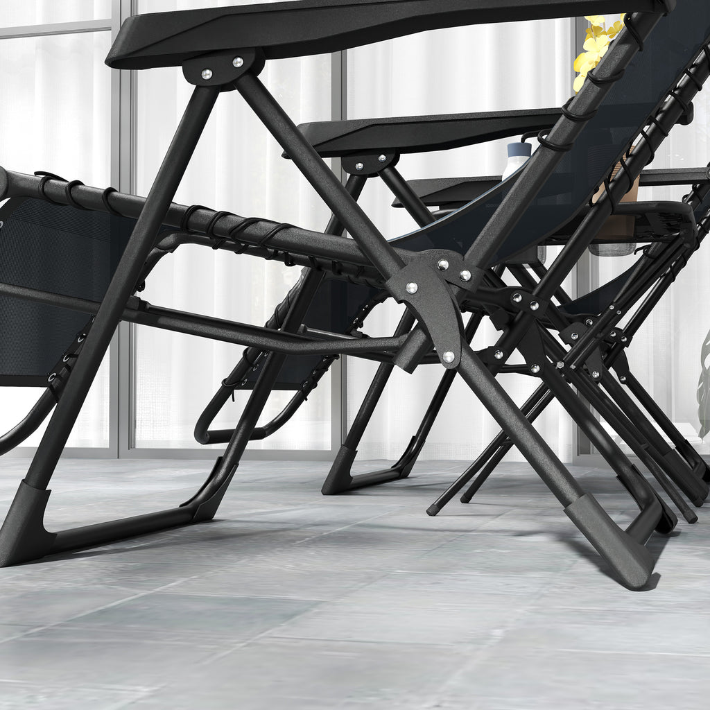 Set 2 Sedie Sdraio a Gravità Zero Pieghevoli e Tavolino Grigio