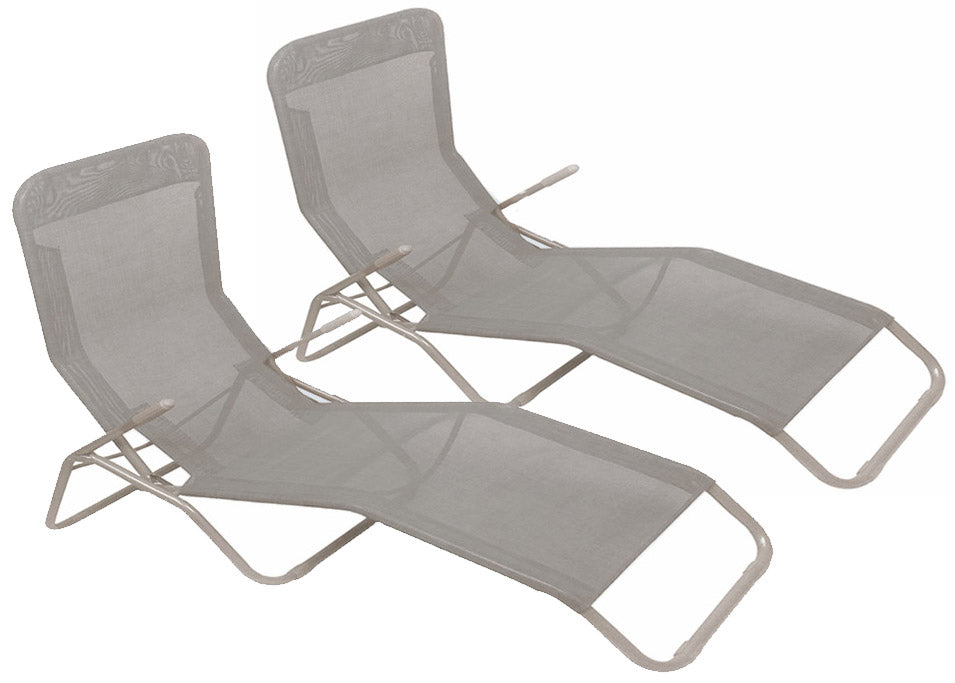 Lot de 2 Transats Pliants en Métal Tissu Textilène Soriani Dondolina Gris Chiné