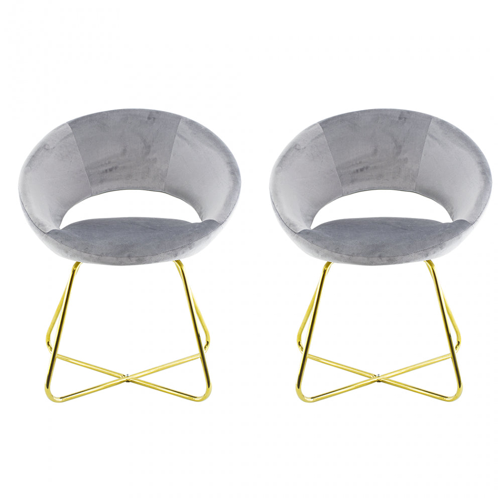 Lot de 2 Chaises Vintage 58x64x83 cm en Tissu Effet Velours Gris Greta