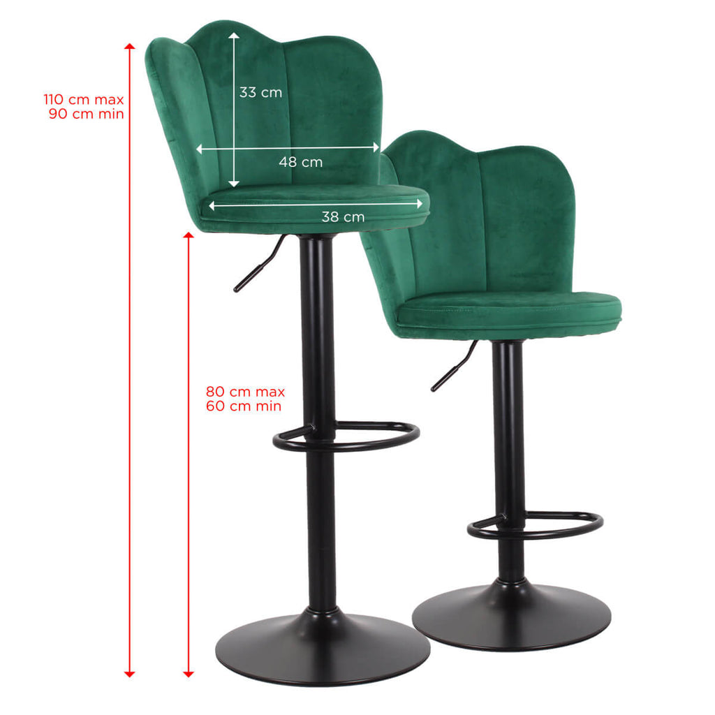 Set 2 Tabourets 38x38x60/80 cm en Velours Noir Piètement Sarcelle