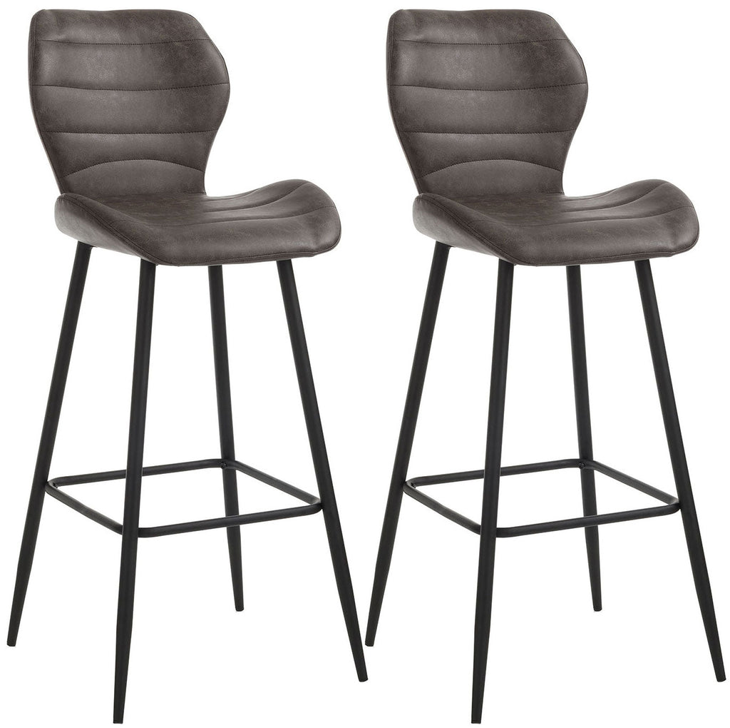 Lot de 2 Tabourets 44,5x46x107,5 cm en Simili Cuir Marron