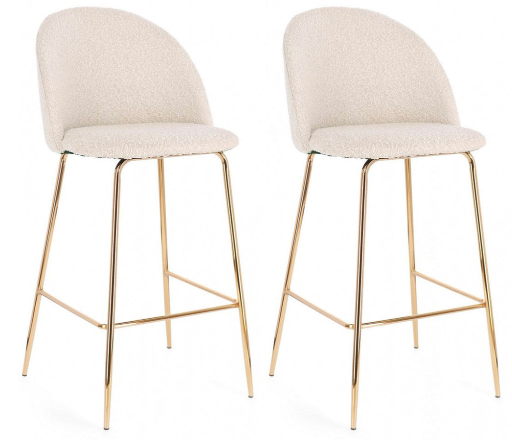 Lot de 2 tabourets 51x55x105 cm Carry en Bouclè Or et Ivoire