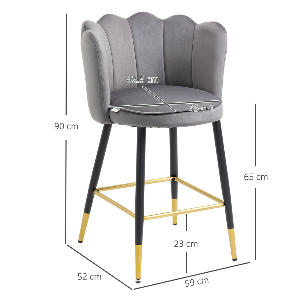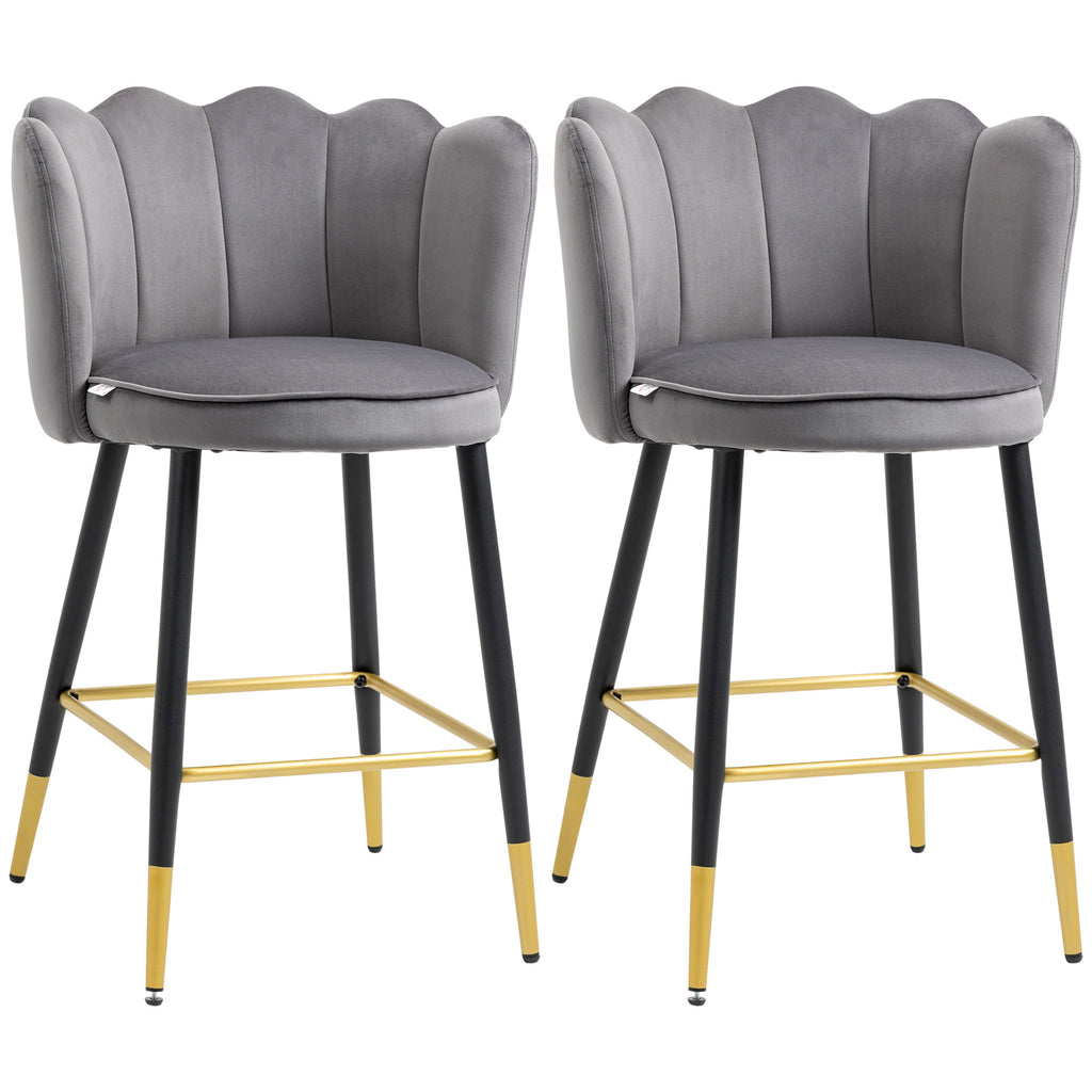 Lot de 2 tabourets 59x52x90 cm en tissu polyester velouté gris
