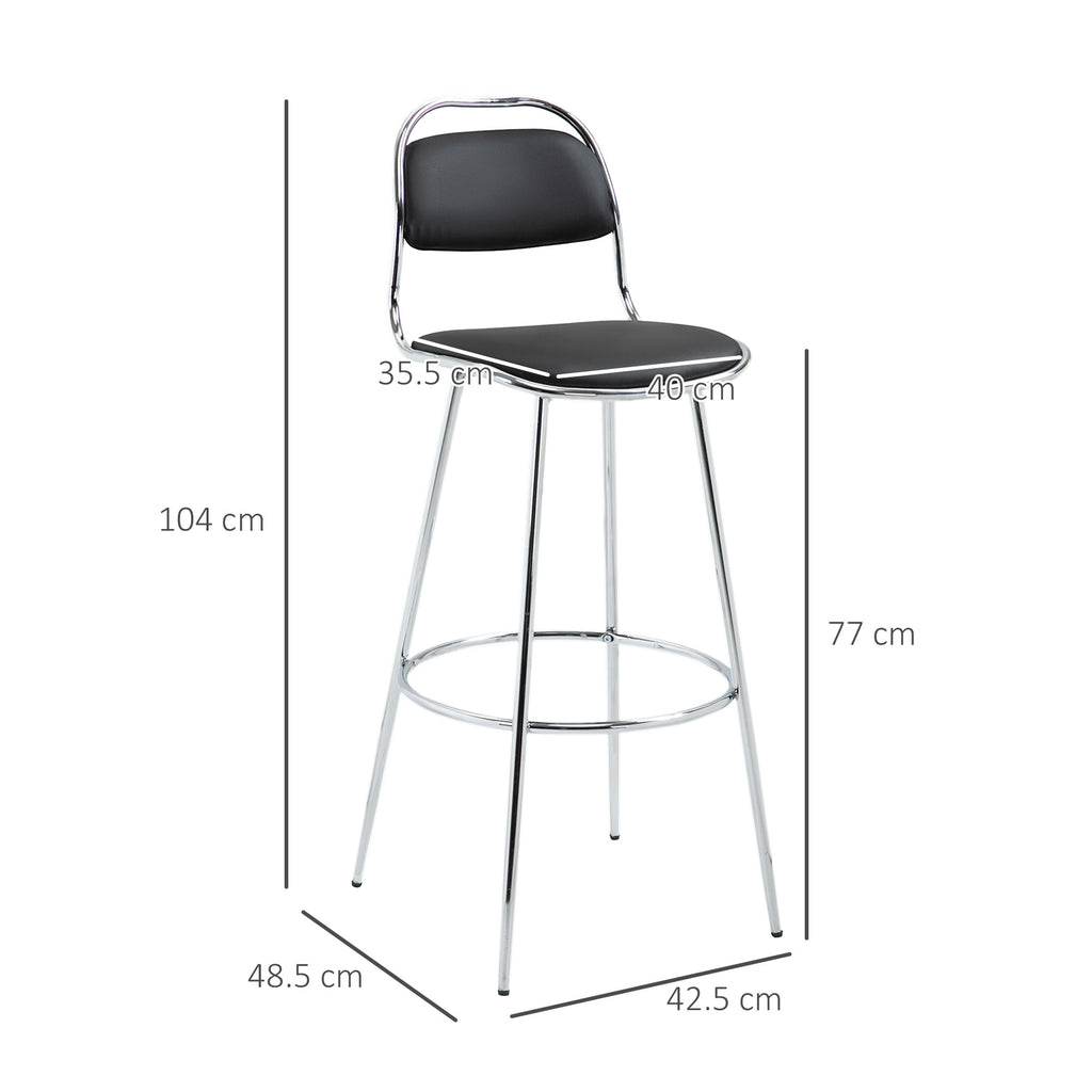 Lot de 2 Tabourets Hauts de Bar 42,5x48,5x104 cm en Métal Noir