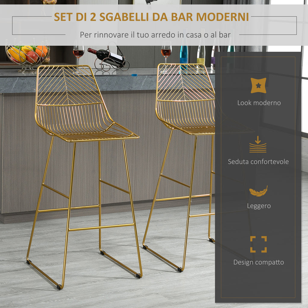 Lot de 2 tabourets de bar hauts 53x56x110 cm en métal doré