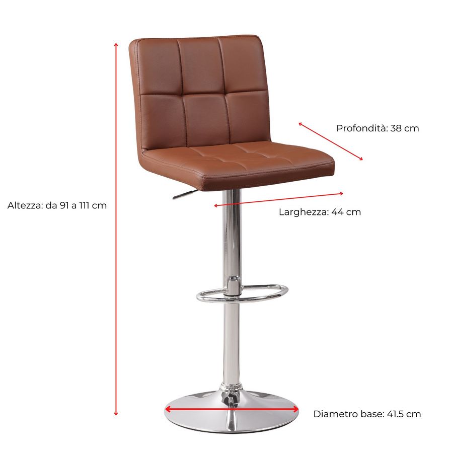 Set 2 Sgabelli Bar 44x38x91-111 cm in Similpelle Marrone