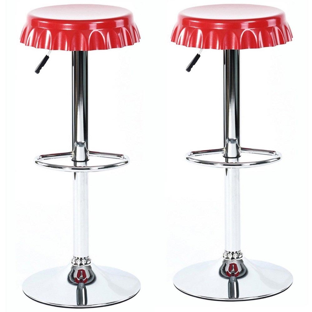 1 x Set 2 Sgabelli Bar Cucina Seduta Forma Tappo Bottiglia Sgabello Girevole Rosso