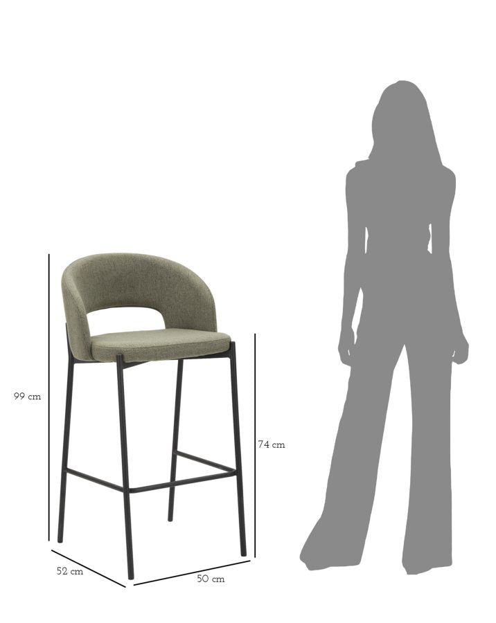 Lot de 2 tabourets de bar Helsinki 50x99x52 cm en tissu vert/noir
