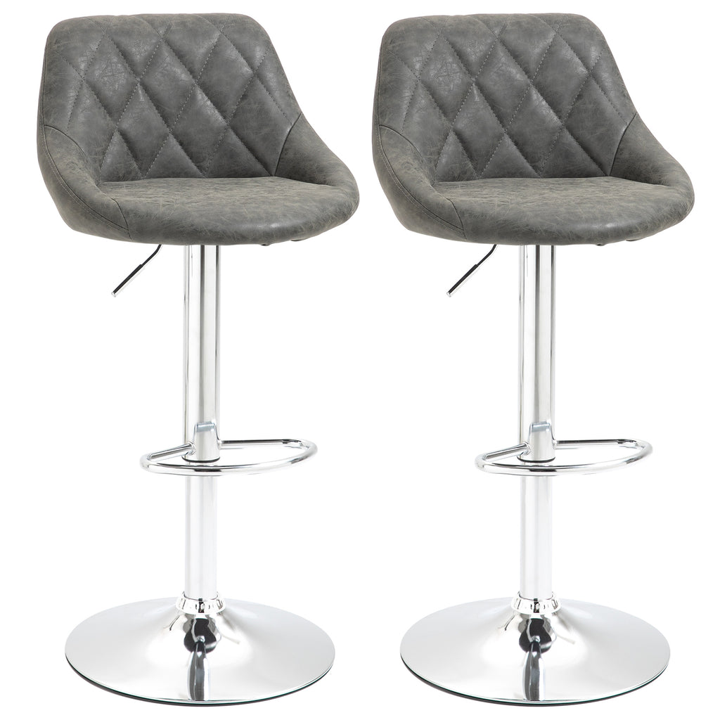 Lot de 2 Tabourets de Bar 51,5x48x83-104 cm en Simili Cuir Gris Foncé