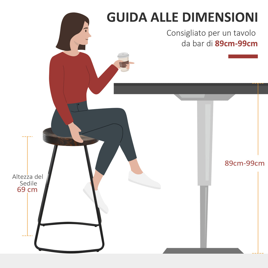 Set 2 Tabourets Hauts de Bar en Acier et Bois 49,5x44x71 cm Marron Foncé