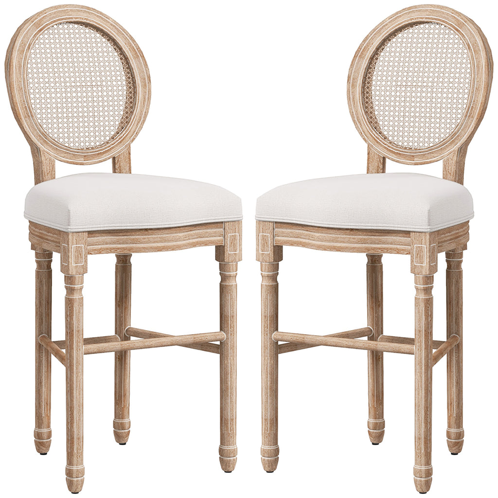 Set 2 Sgabelli da Bar con Schienale Cuscini e Poggiapiedi 48x56x118 cm in Legno e Poliestere Crema