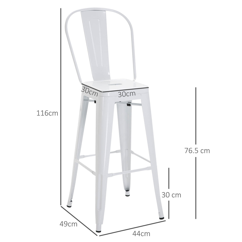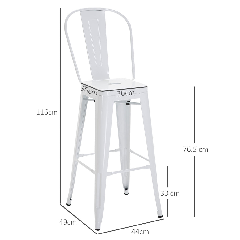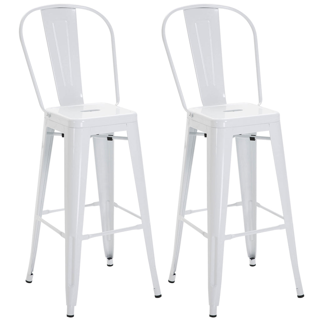Set 2 Sgabelli da Bar Stile Industriale Schienale Rimovibile 44x49x116 cm in Metallo Bianco