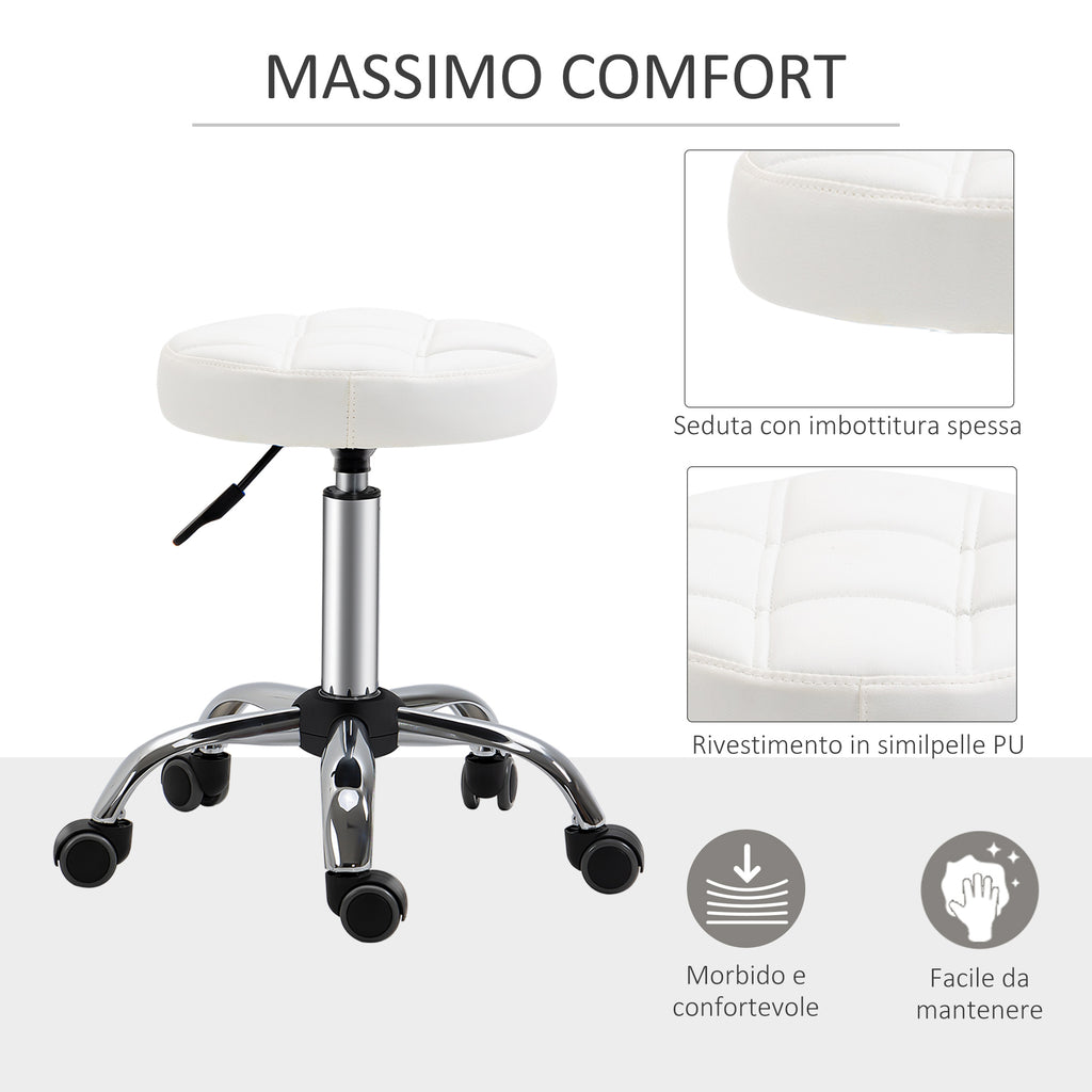 Set 2 Tabourets Pivotants à Roulettes Ø35,5x46-38 cm en Simili Cuir Blanc