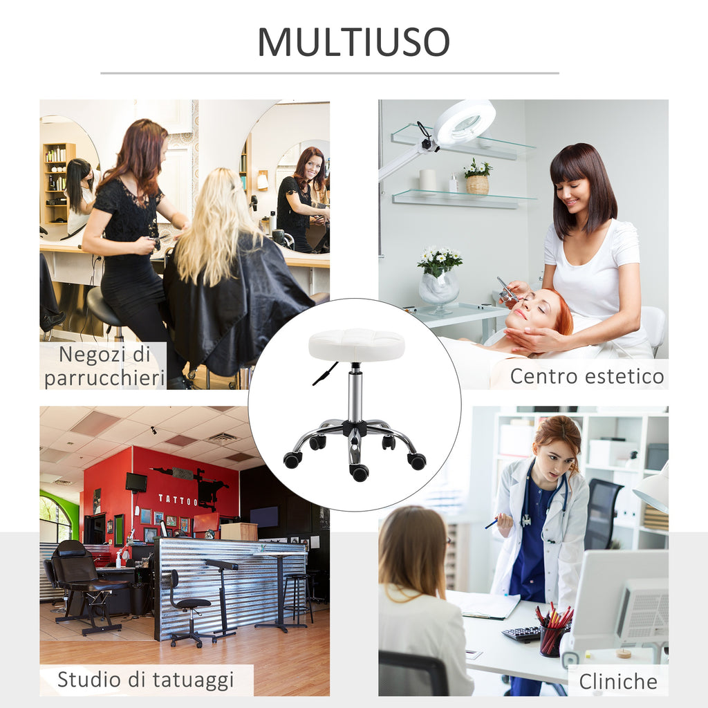 Ce tabouret d'esthéticienne vous permet de vous tenir à la bonne hauteur et crée un environnement de travail idéal. L'assise rembourrée offre tout le confort nécessaire et le revêtement en cuir PU est facile d'entretien. Vous pouvez régler la hauteur du tabouret rembourré en fonction de chaque besoin et avec les 5 roues et le siège pivotant, vous pouvez vous déplacer sans effort. Cet élégant tabouret est parfait pour ajouter du style et de la praticité à votre maison, salon de beauté, salon de coiffure et plus encore !