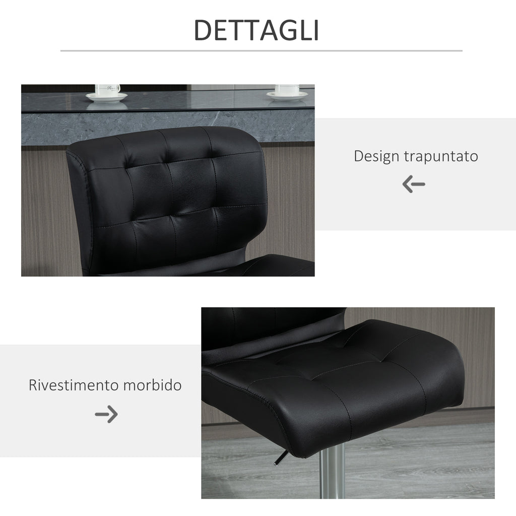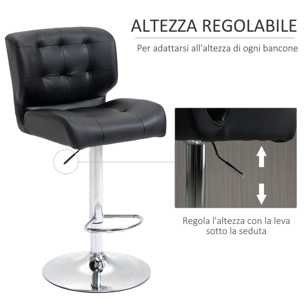 Lot de 2 tabourets rembourrés 50x55,5x93-114 cm en simili cuir noir