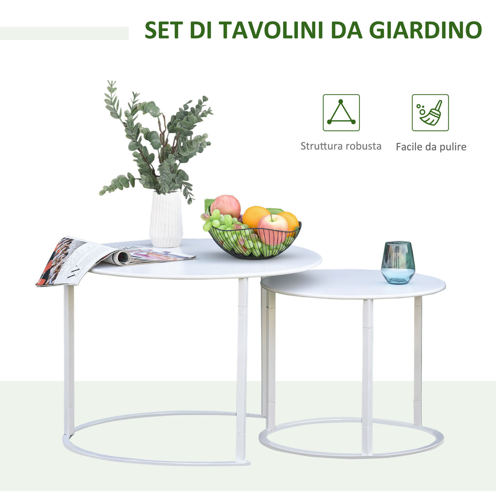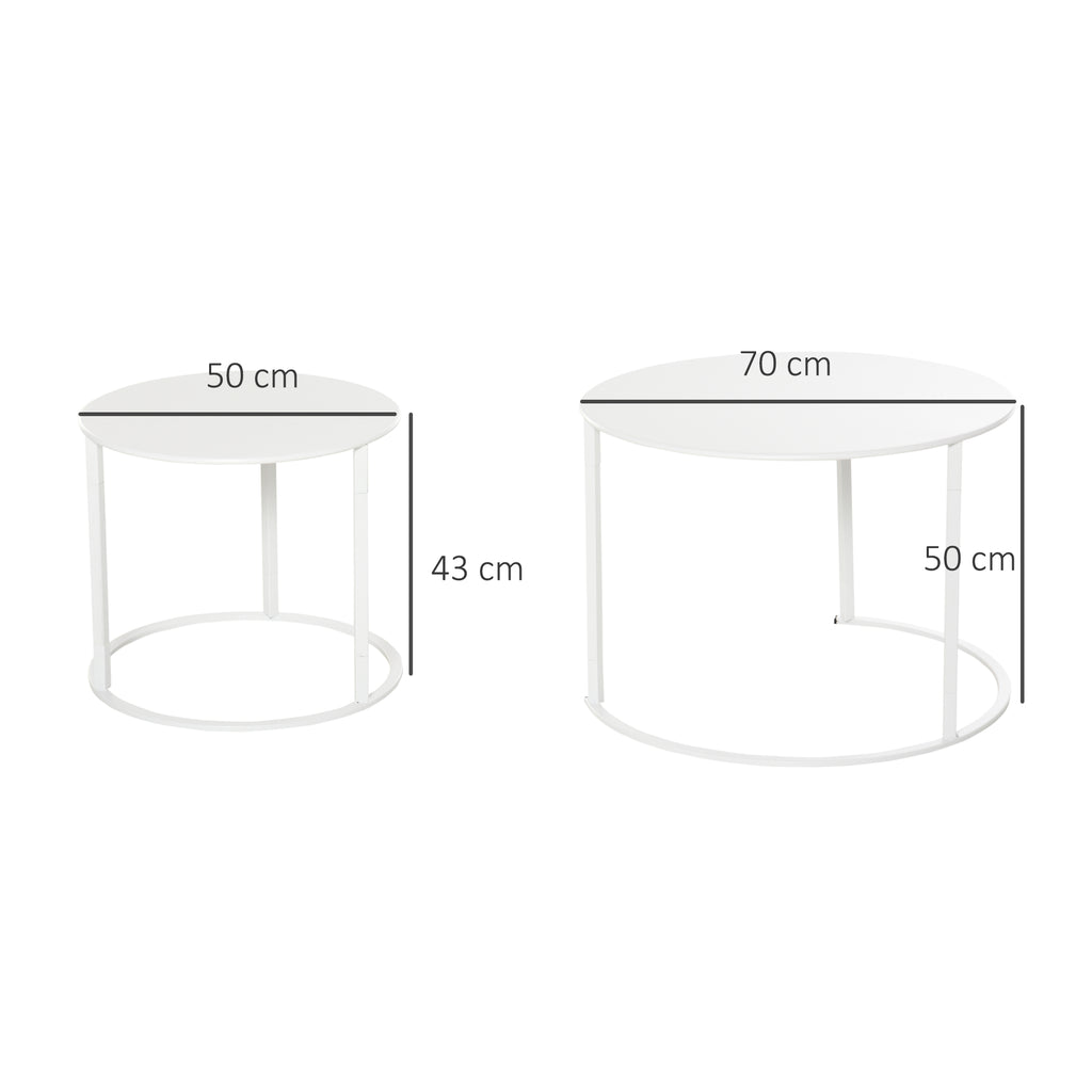 Set de 2 Tables de Jardin Empilables Ø70 cm et Ø50 cm en Fer Blanc