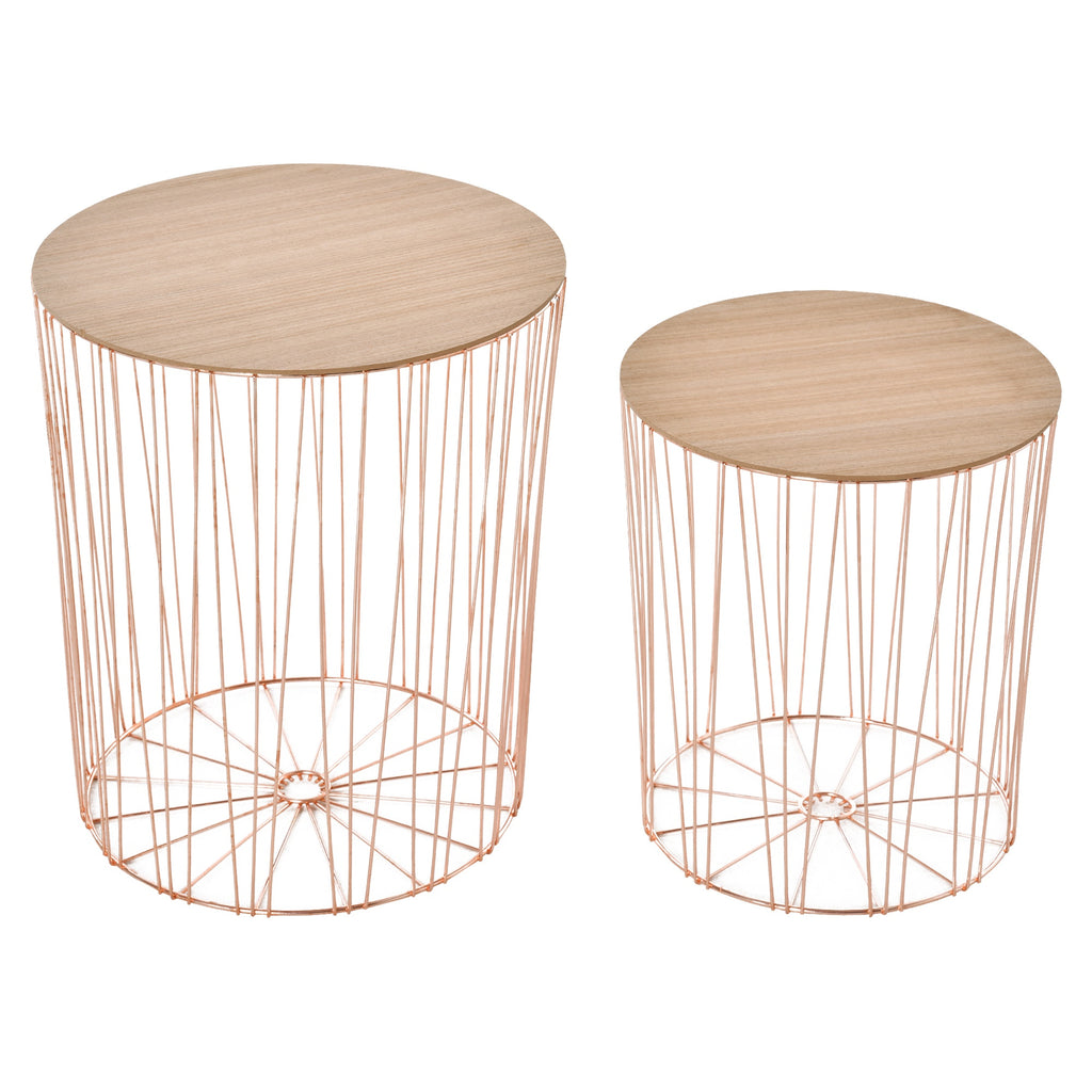 Set de 2 Tables d'Appoint Containers Plateau Amovible en Métal et MDF Or Rose et Bois
