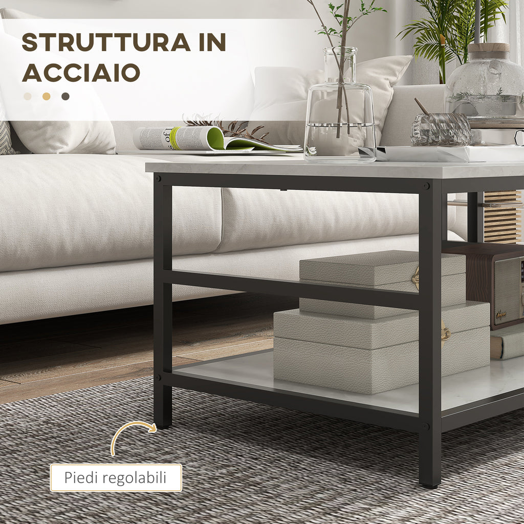 Set 2 Tavolini da Caffè a 2 Livelli con Piano d'Appoggio Effetto Marmo in Truciolato e Acciaio Bianco e Nero
