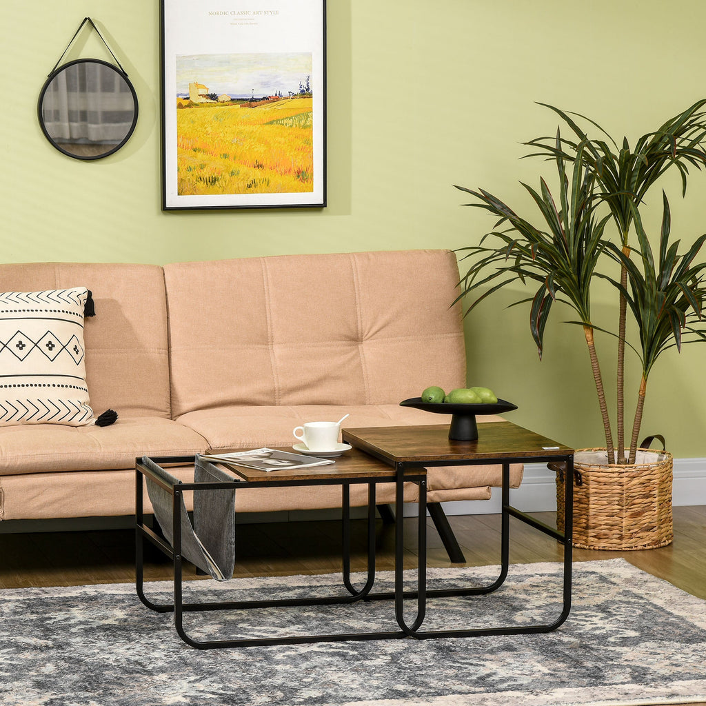 Set de 2 Tables Basses Empilables en MDF et Acier Noir et Marron Rustique