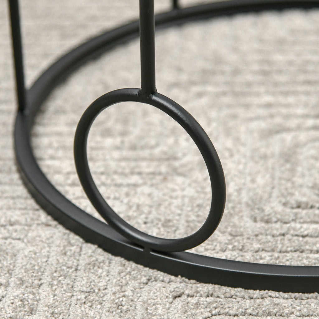 Set de 2 Tables Basses Empilables en Métal Noir et Verre Trempé