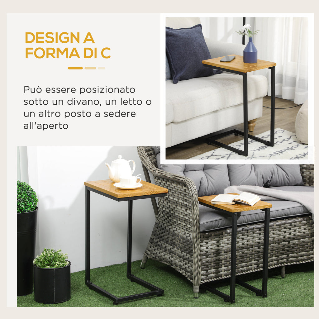 Set 2 Tavolini da Giardino in Metallo e Legno di Pino
