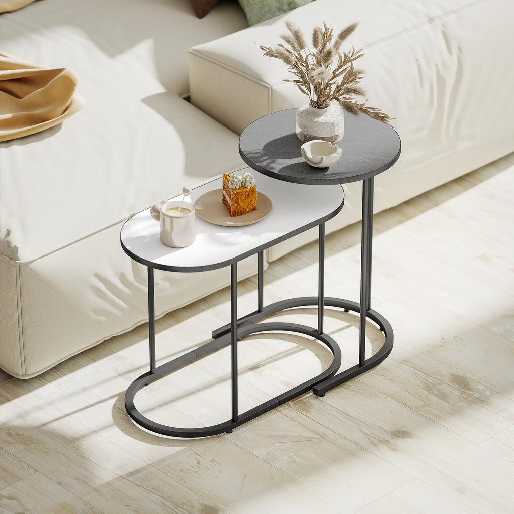 • DESIGN SOVRAPPONIBILE: Questo set include un tavolino rotondo e uno ovale che possono essere usati insieme o separatamente. Il design impilabile permette di ottimizzare lo spazio quando non li usi