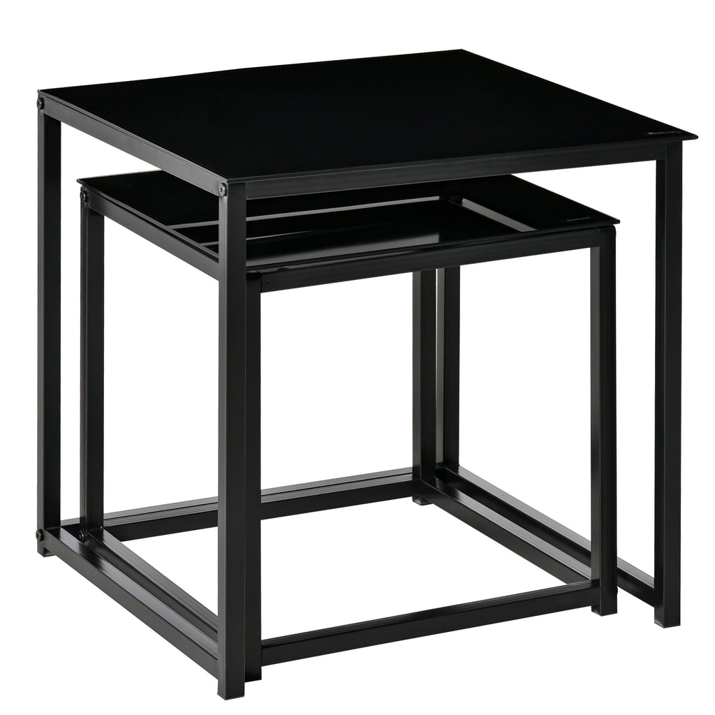 Ensemble de 2 tables basses modernes avec plateaux en verre trempé noir