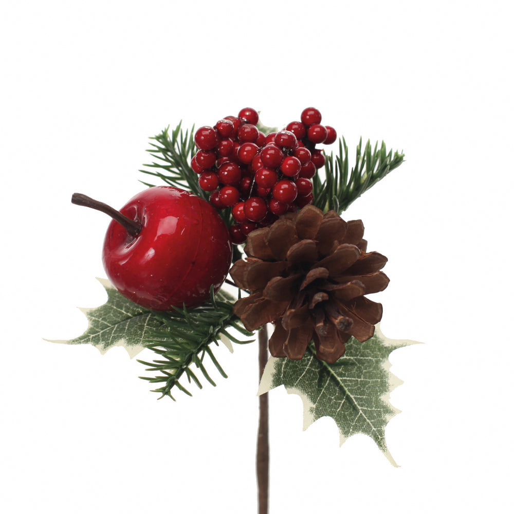 Set 24 Pics Pommes et Baies H15 cm Rouge
