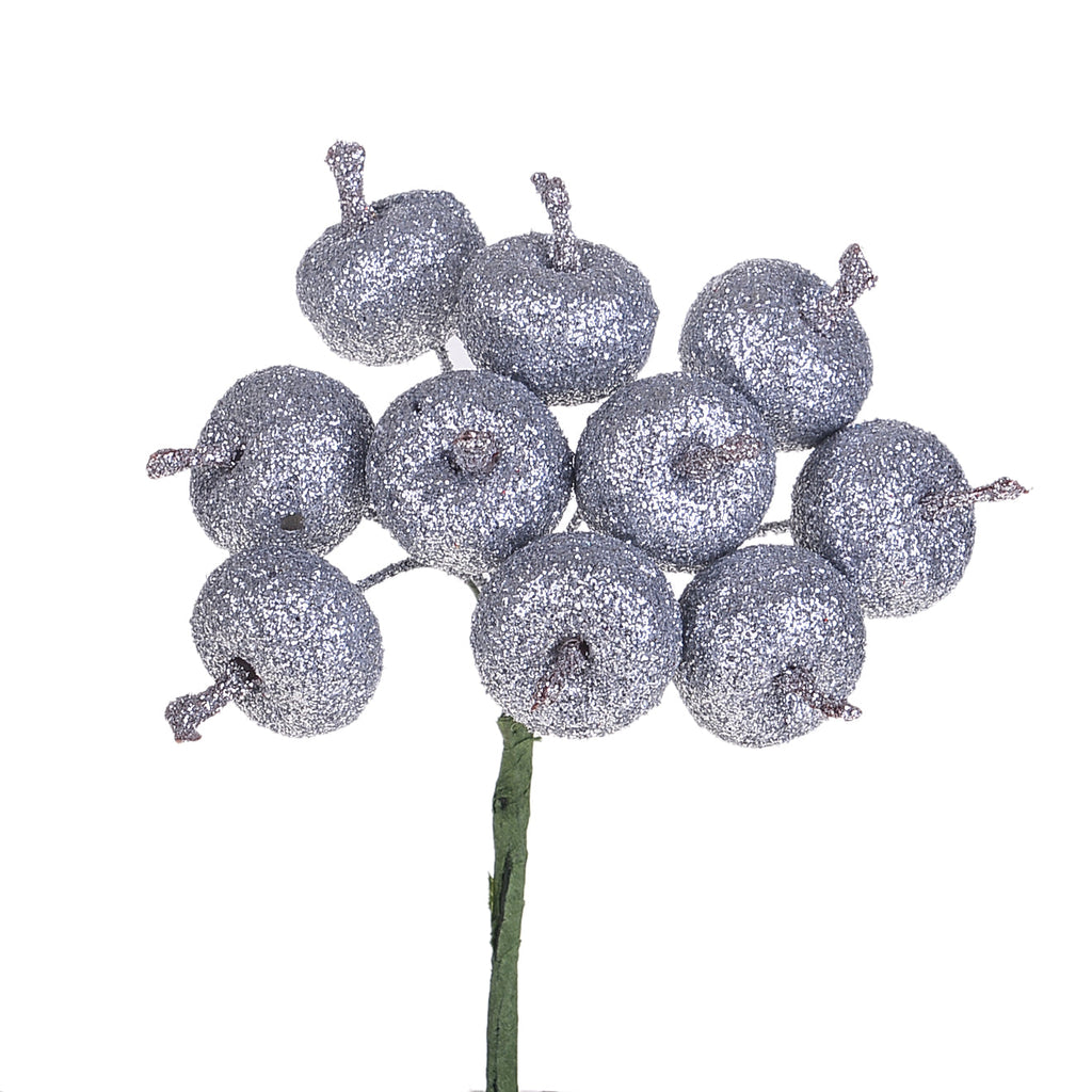 Lot de 24 Pics Pomme Paillettes H12,5 cm Argenté