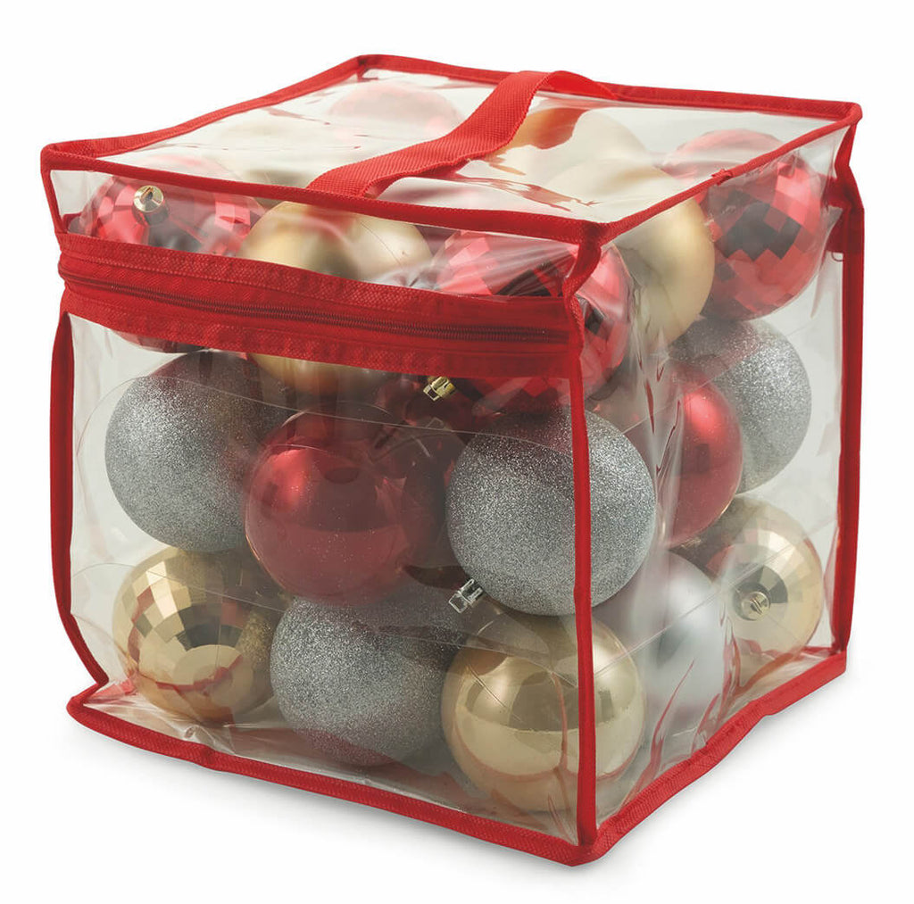 Lot de 27 boules décoratives Ø8 cm pour le sapin de Noël Tabby, rouge or et argent