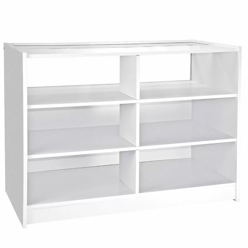 Le comptoir B1200 est l'unité fermée avec des panneaux de verre sur le dessus et dans la partie supérieure de la façade. L'ouverture arrière permet un accès facile à la vitrine et les deux étagères en dessous offrent suffisamment d'espace de rangement.