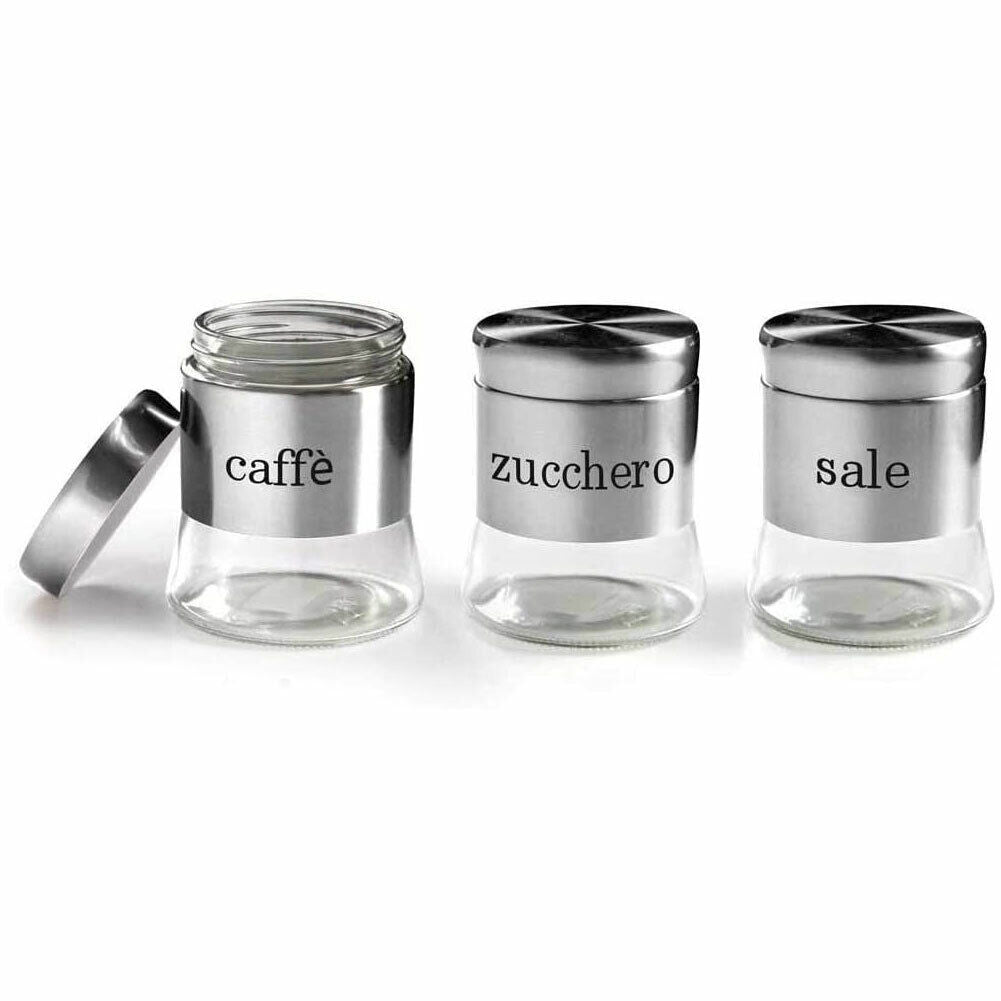 Set 3 Barattoli Porta Caffè Zucchero Sale Metallo Acciaio 750ml Accessori Cucina