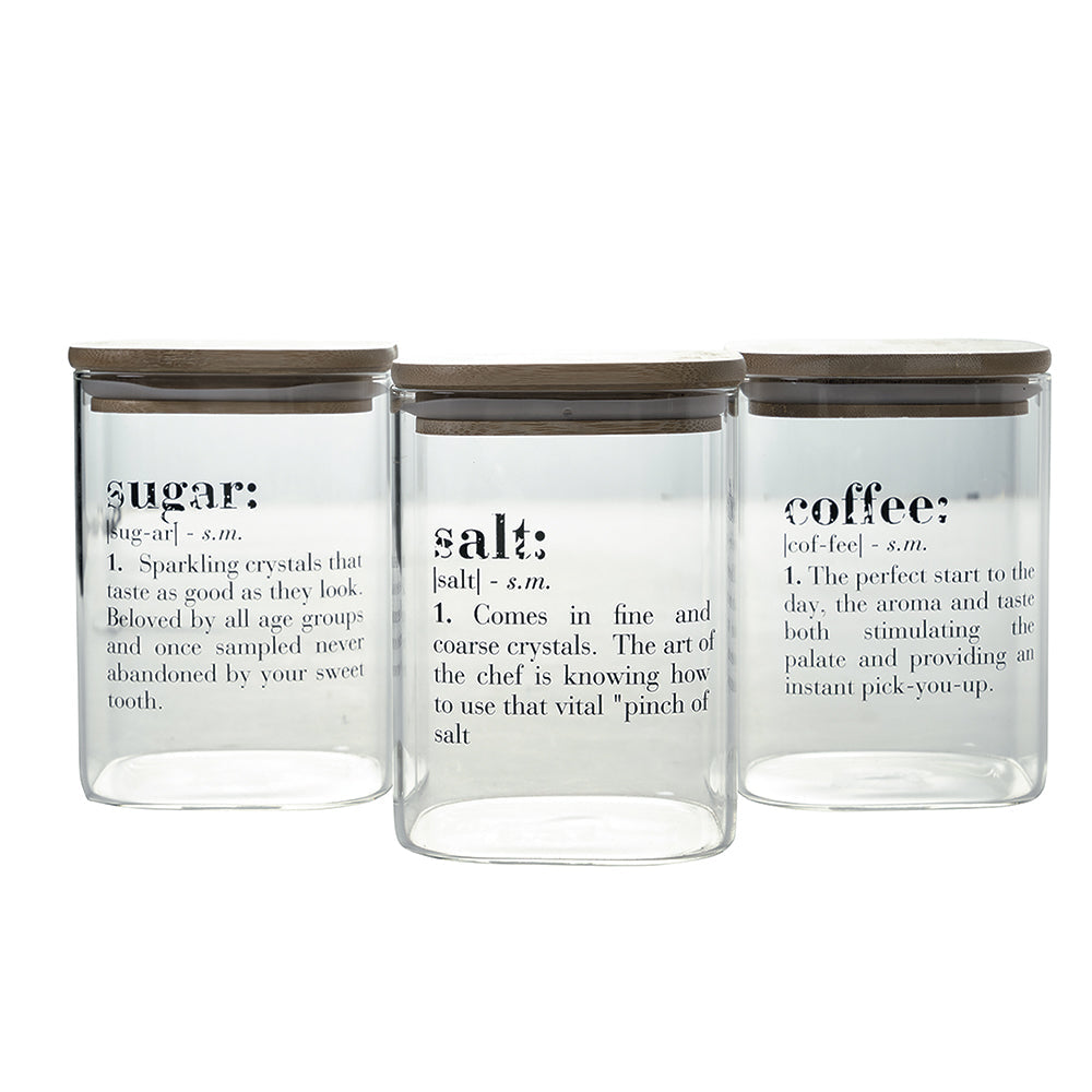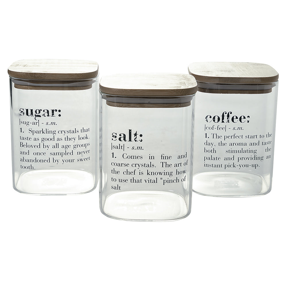 Lot de 3 Pots à Sel, Sucre et Café 1 Litre en Verre Transparent Anglais VdE Tivoli 1996 Victionary