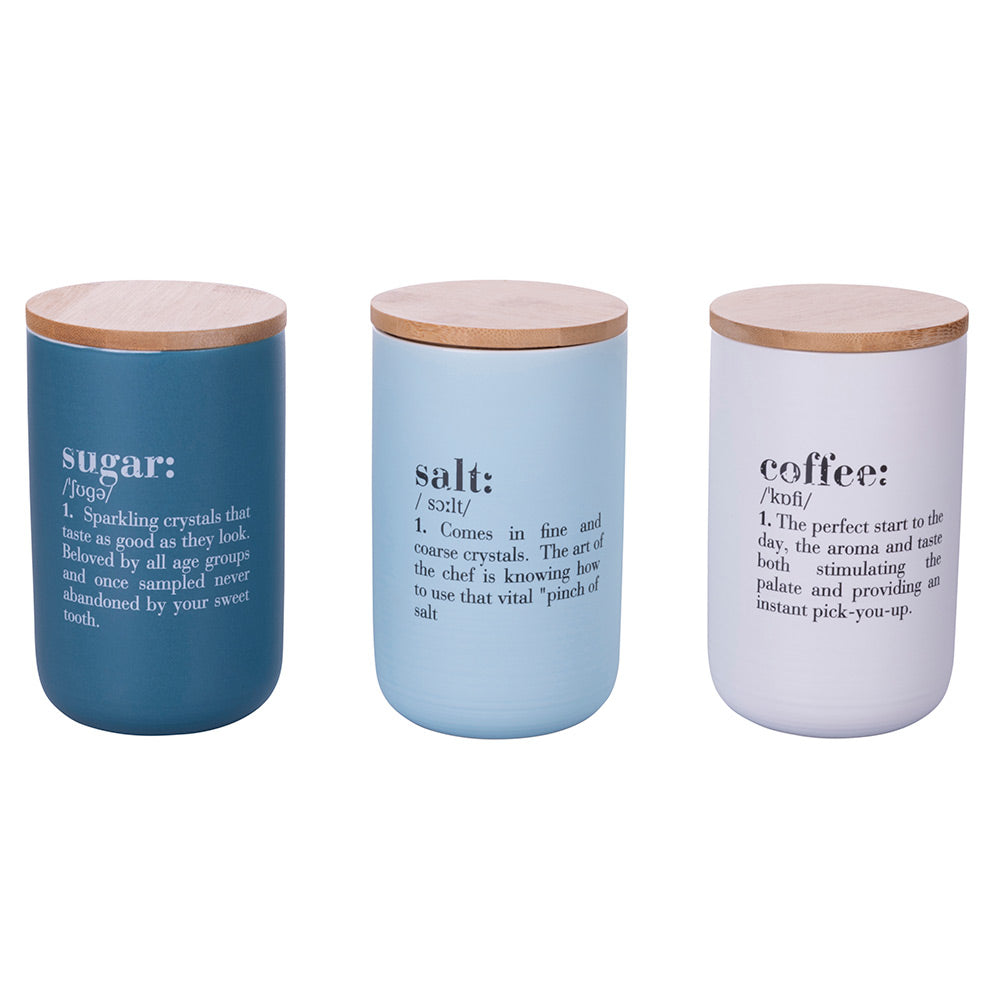 Lot de 3 Pots Double Face à Sel, Sucre et Café 750 ml en New Bone China VdE Tivoli 1996