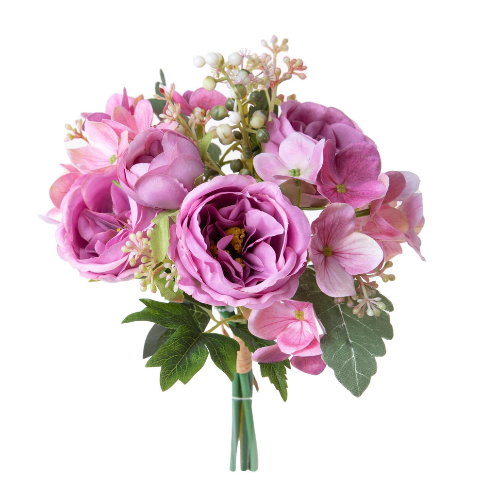 Lot de 3 bouquets artificiels de roses choux 35 cm