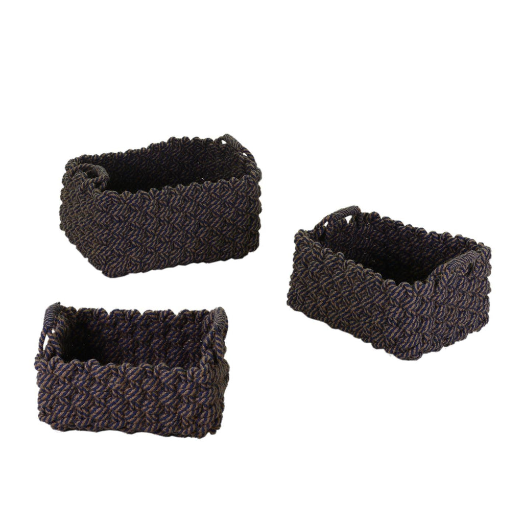 Lot de 3 paniers rectangulaires en tissu bleu crème