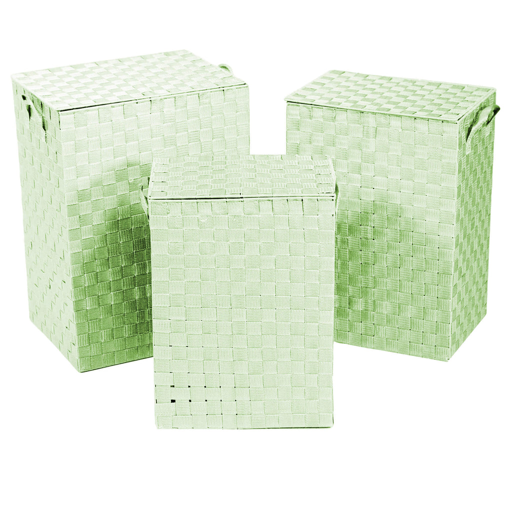 Ensemble de 3 paniers à linge rectangulaires en polyester vert clair doublés