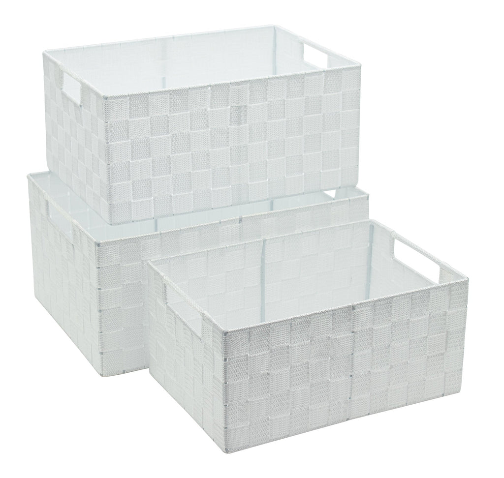 Ensemble de 3 paniers de rangement en polypropylène blanc avec poignées