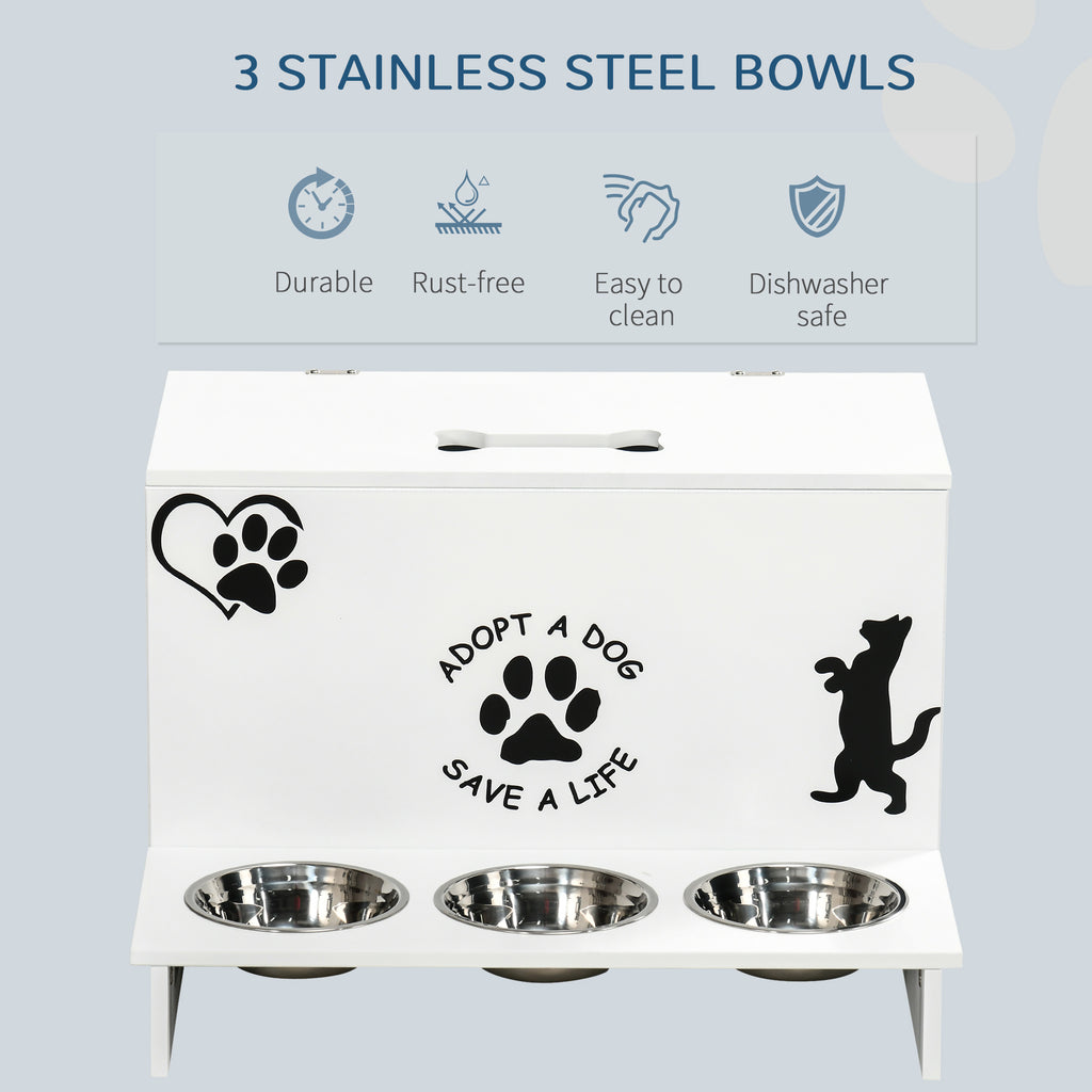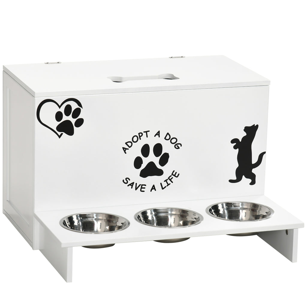Set 3 Ciotole per Cani 500 ml 57x53x37,5 cm in MDF e Acciaio Inox Bianco