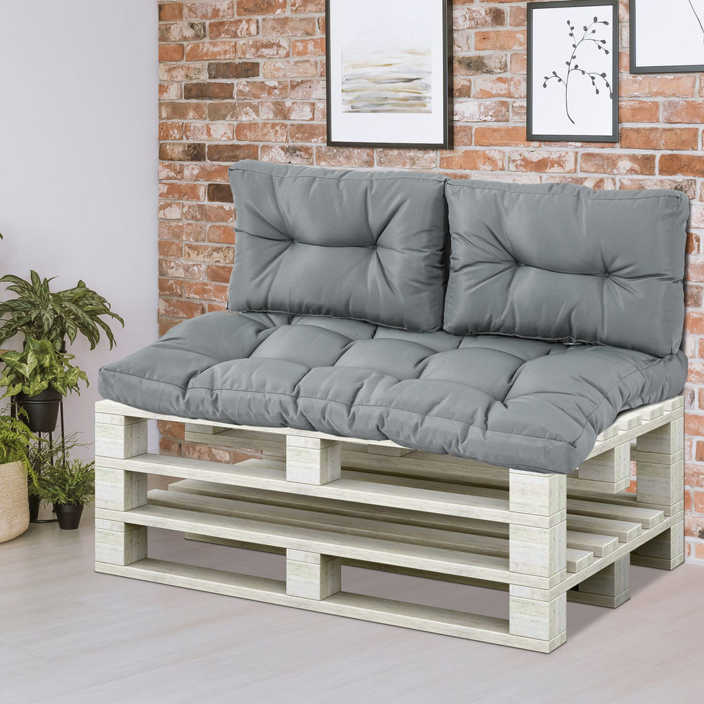 Lot de 3 coussins d'assise et 2 dossiers pour palette en polyester capitonné gris foncé