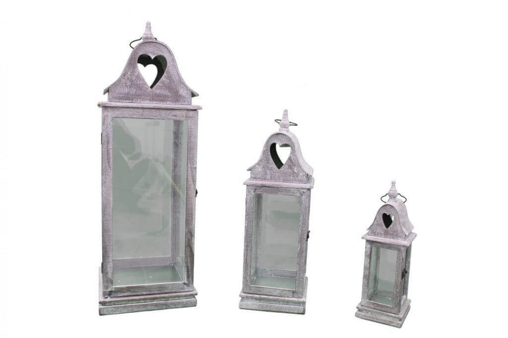 Set 3 Lanternes Estelle en Métal et Bois Blanc Oxydé