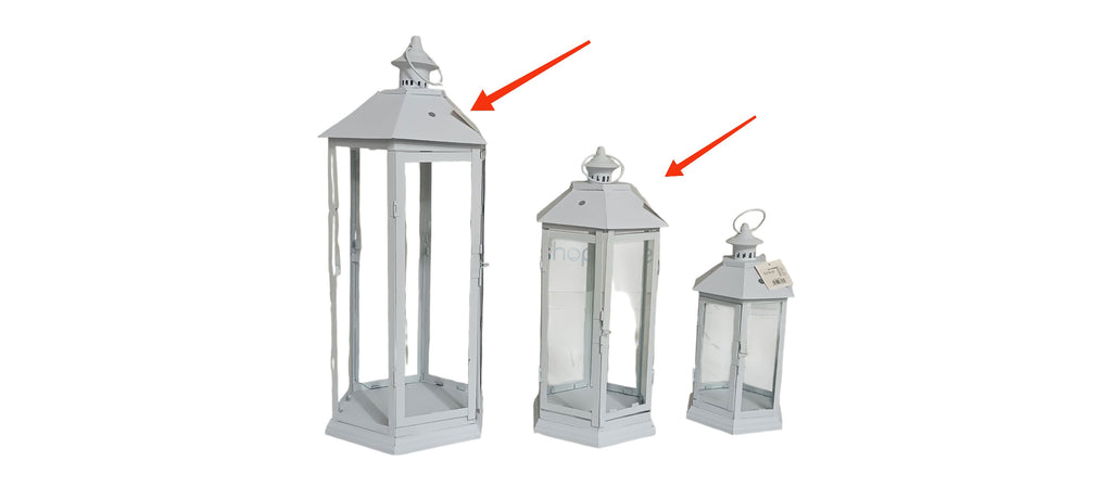Set 3 Lanterne in Metallo bianco esagonale Seconda Scelta