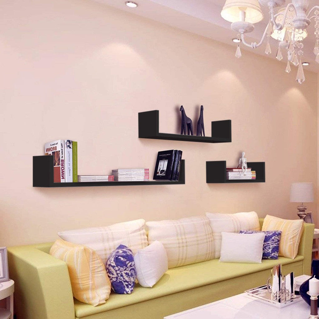 Lot de 3 étagères en U 30-40-50 cm Rangement mural noir