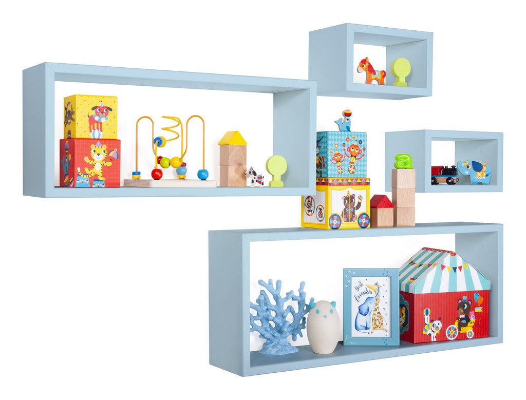 Ensemble de 3 étagères cubiques murales carrées et rectangulaires en panneaux de fibres de bois bleu baltique Merlin