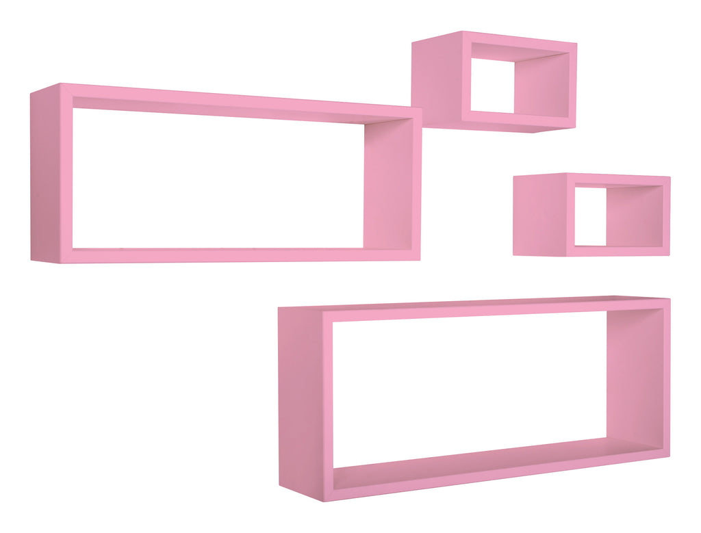 Ensemble de 3 étagères cubiques murales carrées et rectangulaires en panneaux de fibres de bois rose blush Merlin