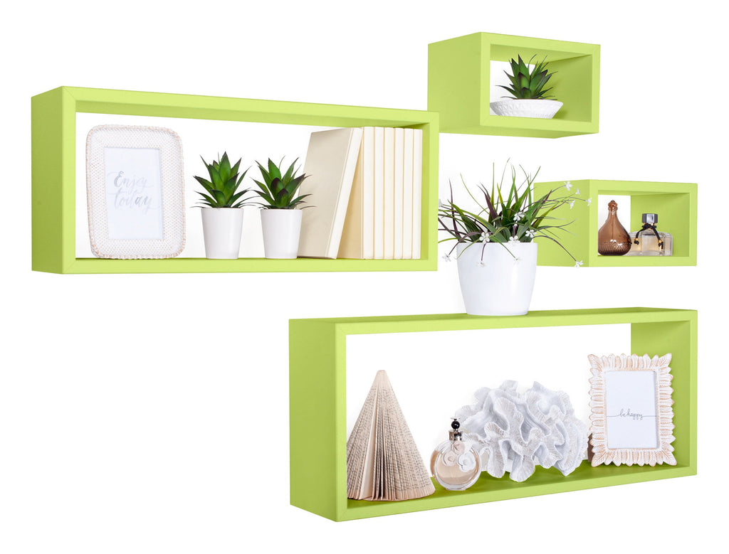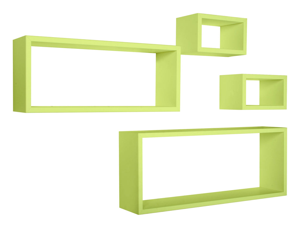 Ensemble de 3 étagères cubiques murales carrées et rectangulaires en panneaux de fibres de bois vert Merlin